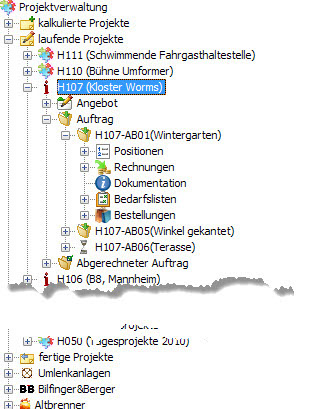 Ein Highlight von QOMET ist der Projektbaum, der die Struktur Ihres Unternemhens abbildet. Sie haben viele Kleinaufträge? Sie haben Schwerpunkte wie Umlenkanlagen oder Treppen? Sie haben einige Großkunden, für die Sie immer wieder arbeiten? Eine solche Abbildung ist problemlos möglich und zur besseren Unterscheidung können Sie überall entsprechende Symbole oder Grafiken hinterlegen.